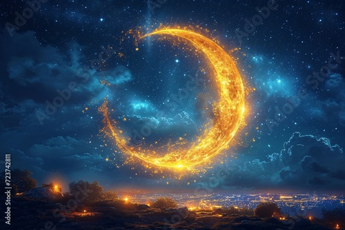 Glowing Moonlit Night: A Celestial Celebration of the Full Moon in August Generative AI