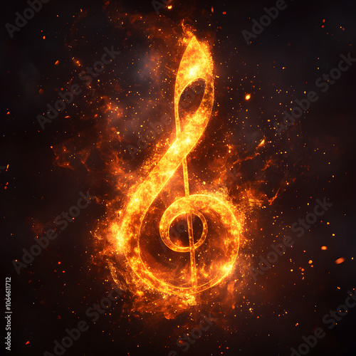 Glowing Music Note Abstract Art with Fiery Flames and Vibrant Color Effects