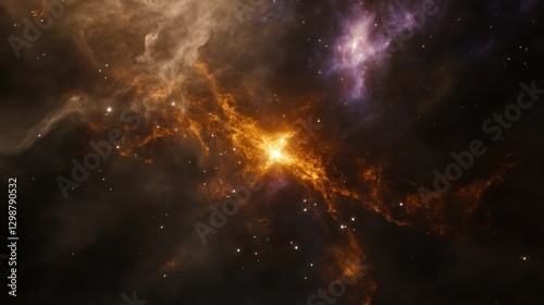 Glowing Nebula in Deep Space with Stars and Colorful Cosmic Clouds