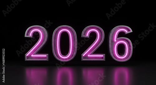 Glowing Neon 2026: Futuristic Date with Pink Light and Dark Reflection