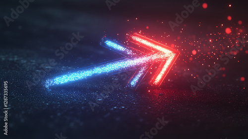 Glowing Neon Arrow with Particles on Dark Background