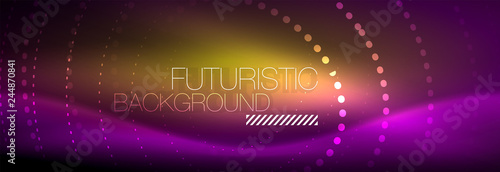 Glowing neon circle line dots, round line design, abstract style on black background. Neon abstract round circles Magic neon lights and glowing dots