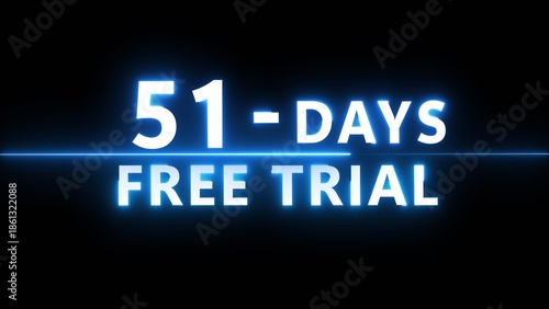 Glowing neon countdown illustration number on black background. Neon 51 countdown text number.