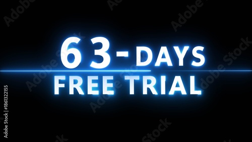 Glowing neon countdown illustration number on black background. Neon 63 countdown text number.