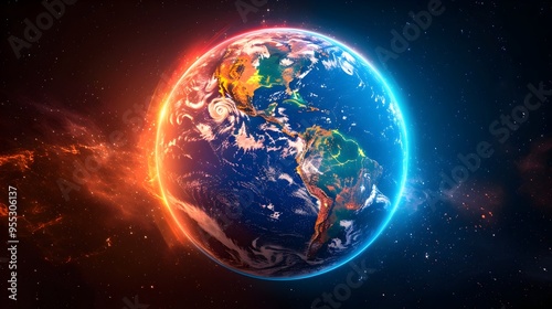 Glowing Neon Earth A Striking Futuristic Planet Concept with Vibrant Lights and Details