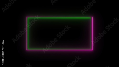 Glowing neon frame with green and pink lines on black background illuminating creative design for modern digital aesthetics