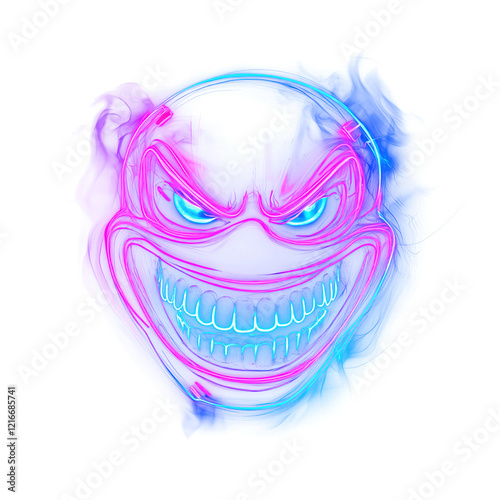 Glowing Neon Grinning Face with Electric Aura on Transparent Background