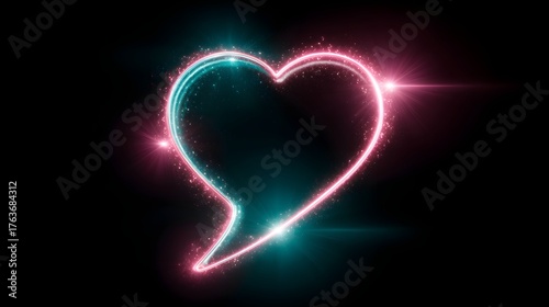 Glowing neon heart shape outlines itself with vibrant pink and cyan light trails against a dark background
