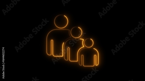 Glowing neon illustration of three stylized people on a black background signifying teamwork