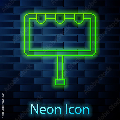 Glowing neon line Blank big billboard with lights icon isolated on brick wall background. Vector