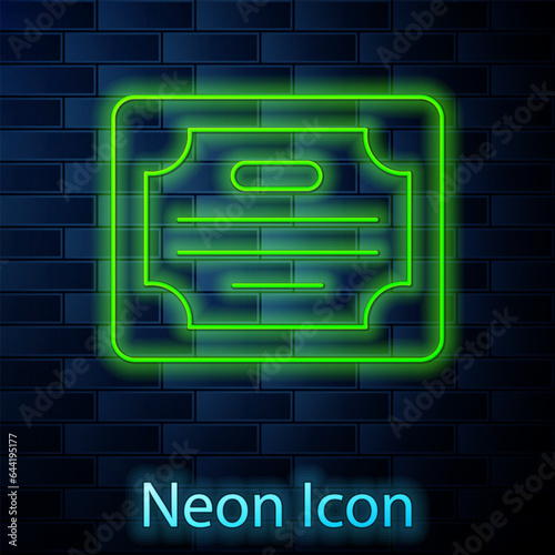Glowing neon line Certificate template icon isolated on brick wall background. Achievement, award, degree, grant, diploma concepts. Vector