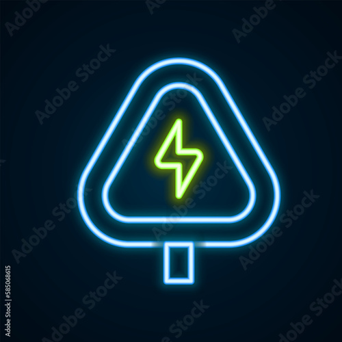 Glowing neon line High voltage sign icon isolated on black background. Danger symbol. Arrow in triangle. Warning icon. Colorful outline concept. Vector