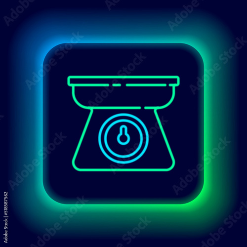 Glowing neon line Scales icon isolated on black background. Weight measure equipment. Colorful outline concept. Vector