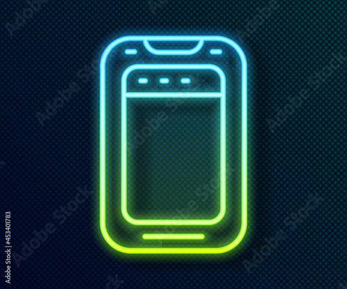 Glowing neon line Smartphone, mobile phone icon isolated on black background. Vector
