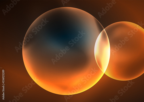 Glowing neon shiny transparent bubbles, glass circles or bio cell concept. Techno futuristic vector abstract background For Wallpaper, Banner, Background, Card, Book Illustration, landing page