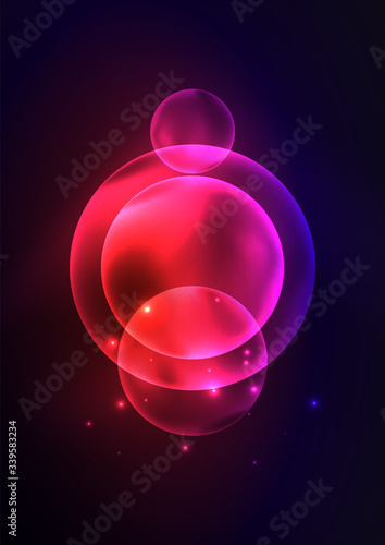 Glowing neon shiny transparent bubbles, glass circles or bio cell concept. Techno futuristic vector abstract background For Wallpaper, Banner, Background, Card, Book Illustration, landing page