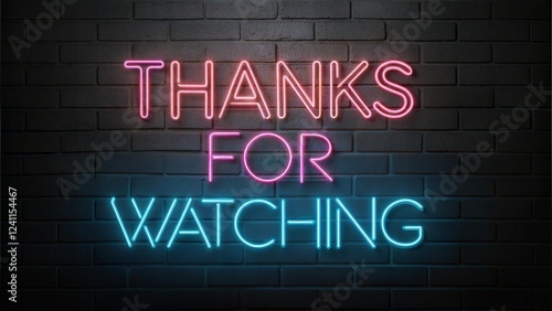 Glowing Neon Sign 'Thanks for Watching' on Dark Brick Wall – Futuristic Light Typography Design