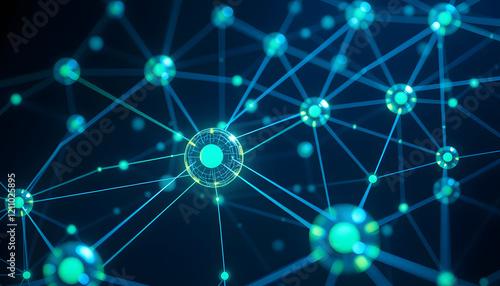 Glowing Network: Abstract Nodes and Connections in Teal