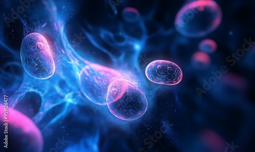 Glowing Orbs Suspended in a Blue and Pink Nebula
