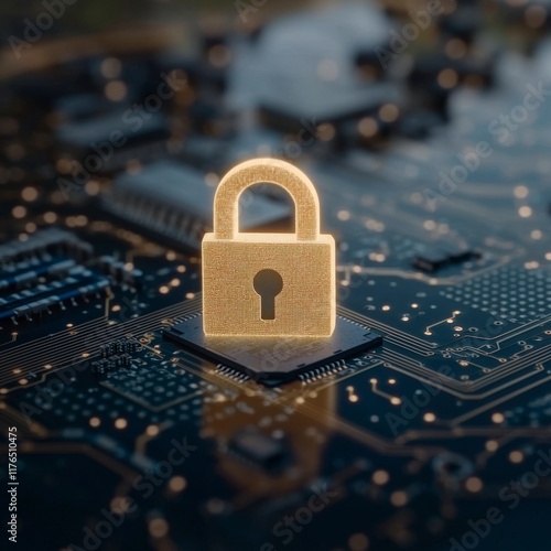 Glowing Padlock on Circuit Board Digital Security Cyber Protection