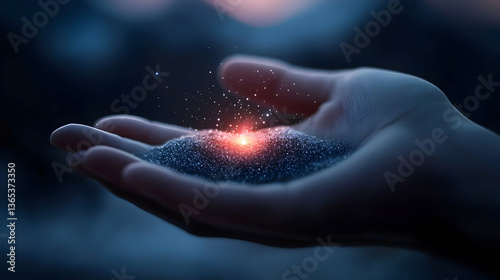 Glowing Particles in a Hand at Night