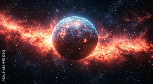 Glowing Planet Surrounded by Fiery Cosmic Ring