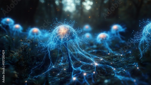 Glowing Plants in a Dark Forest: A Mystical Fantasy