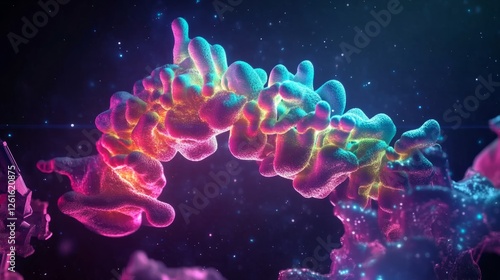 Glowing protein structure in space symbolizes scientific innovation and molecular discovery.