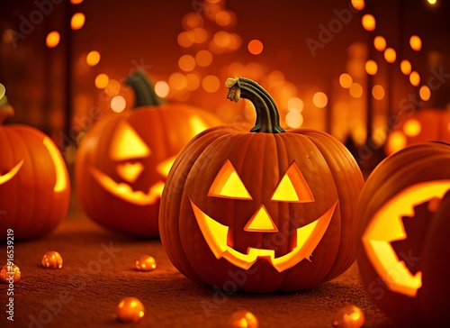 Glowing Pumpkin Decorations for the Holiday, Halloween Concept
