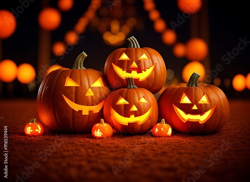 Glowing Pumpkin Decorations for the Holiday, Halloween Concept