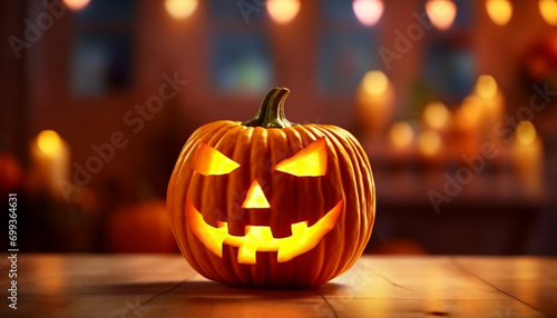 Glowing pumpkin lantern lights up spooky Halloween night celebration generated by AI