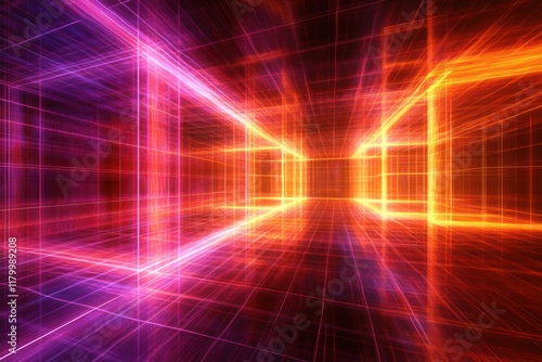Glowing purple-orange digital tunnel; abstract background, futuristic tech design