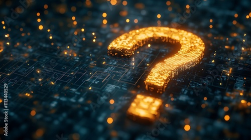 Glowing question mark on circuit board.