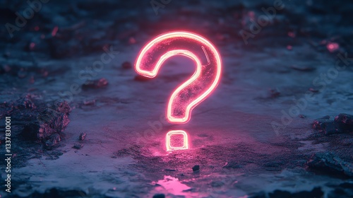 Glowing Question Mark Symbol on Ground Surface Represents Inquiry and Uncertainty