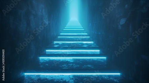 Glowing staircase in a futuristic sci fi esque tunnel leading towards a mysterious captivating light The ethereal luminous steps invite viewers on a journey of discovery and