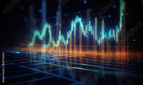 Glowing Stock Market Graph Background With Digital Bars and Data infographic business banner