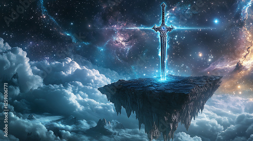 Glowing Sword on a Floating Island in a Cosmic Landscape