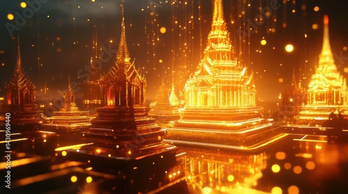 Glowing Temples Illuminated by Ethereal Lights at Night