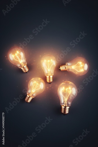 Glowing vintage light bulbs on dark background. Innovation and creative thinking concept. Science Week celebration. Idea visualization for problem solving.