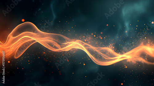 Glowing wavy line with particles on dark smokey backdrop