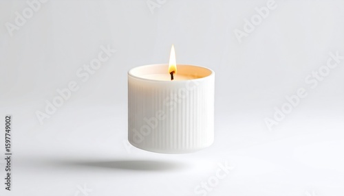 Glowing White Candle Flame Floating On Clear White Backdrop With Soft Shadow