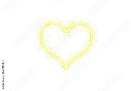 Glowing yellow heart shape with particles isolated on transparent background