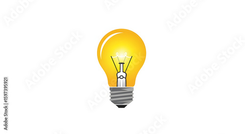 Glowing Yellow Lightbulb Illuminating with Filament on White Background