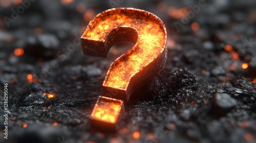 Glühendes Fragezeichen auf geschmolzenem Boden – Mysterium und Rätsel in Flammen