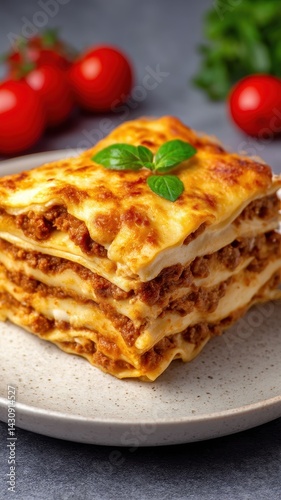Gluten free homemade food isolated. Homemade Gluten Free Lasagna Slice with Delicious Ingredients and Cheese