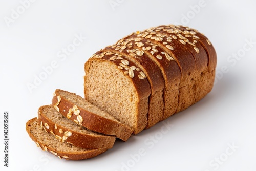 Gluten free homemade food isolated. Homemade Gluten-Free Almond Bread Loaf with Oats Slices