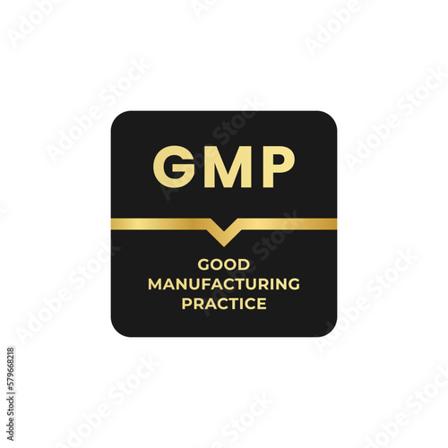 GMP certified label or gmp certified mark in flat style. Good Manufacturing Practices. Gmp certified logo for food products that require a certificate. Gmp seal vector.