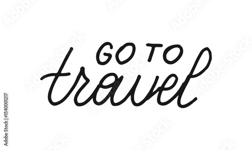 Go to Travel line handwritten words isolated on white background. Hand drawn minimalist Lettering. Typographic inscription for banner, web, print, card, holiday poster, t shirt