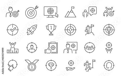Goal and Target web icons in line style. Success, achievement, business goal, aim, career, collection. Vector illustration.
