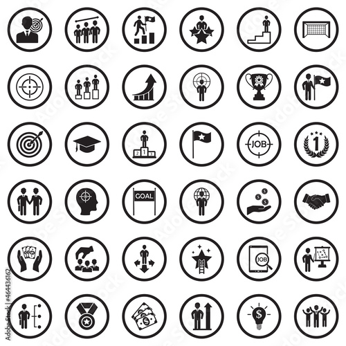 Goal Icons. Black Flat Design In Circle. Vector Illustration.